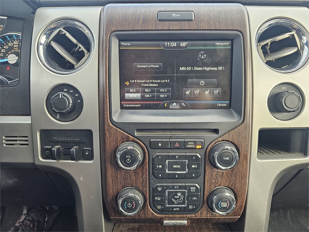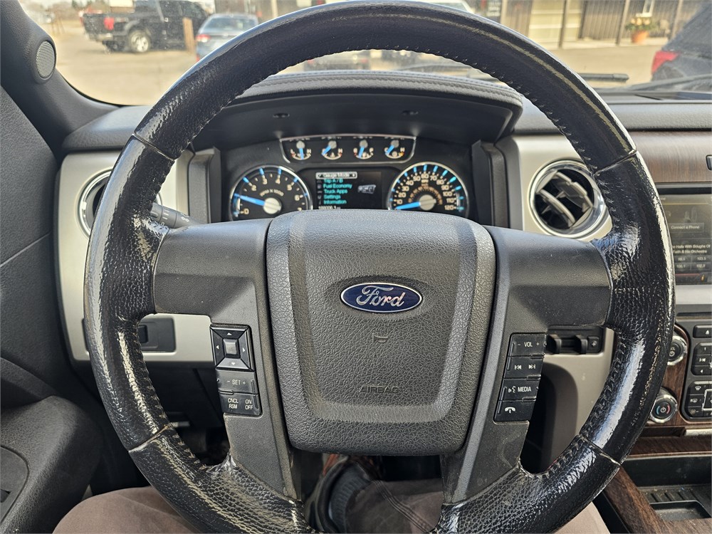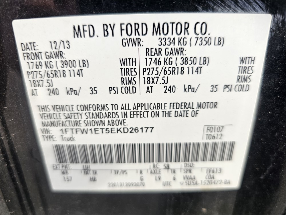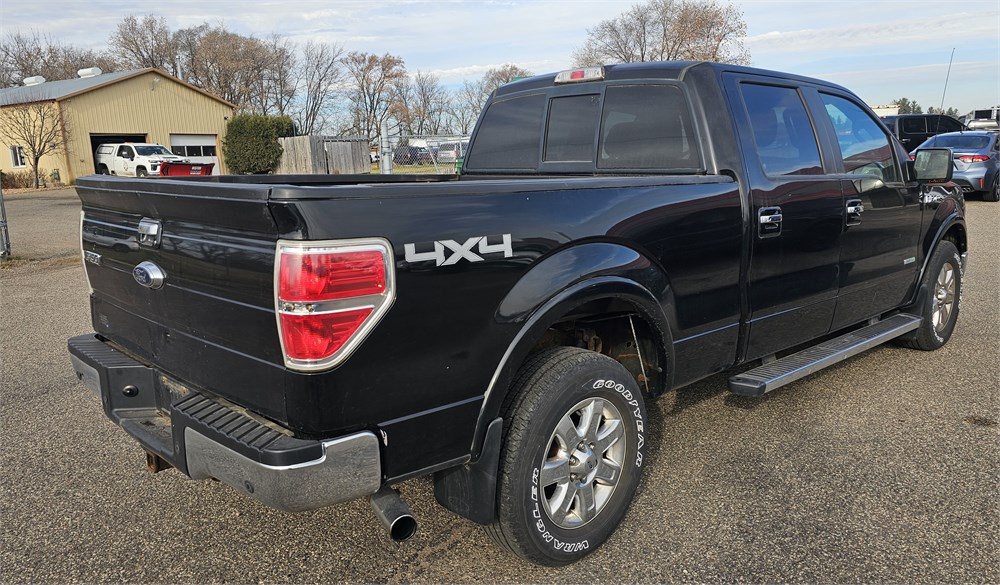2014 Ford F-150 Lariat SuperCrew 4WD up for bid. Clean Title. Vin #1FTFW1ET5EKD26177. Miles are 188,006. This vehicle runs and drives. Engine is a Ecoboost 3.5 liter V6 engine with 365 hp and 420 lb-ft of torque paired to a 6-speed automatic transmission with electronic shift-on-the-fly 4-wheel drive system. This vehicle is equipped with Lariat Chrome Package, Lariat Plus Package, power moonroof, leather upholstery, power heated and cooled front bucket seats with drivers memory, Ford Sync with MyFord Touch and 8 inch touchscreen, Navigation system, Bluetooth, Media Hub (2 USB ports, SD card reader and audio input jacks), premium Sony AM/FM/CD/MP3 audio system, power folding heated auto-dimming sideview mirrors, rear-view camera, rear parking sensors, remote start, keyless entry, SecuriCode keyless exterior keypad, dual zone automatic climate control, auto-dimming rear-view mirror, universal garage door opener, tilt/telescopic steering wheel with multi-function controls, cruise control, power sliding rear window, rear window defrost, power adjustable pedals, power windows and locks, trailer tow package with integrated trailer brake controller, trailer sway control, 502A Package, 5.5 foot bed with bedliner, tailgate step, tonneau cover, 36 gallon fuel tank, 3.55 electronic locking rear differential, hill start assist, AdvanceTrac with RSC, Satellite; Sentry Key; Alarm; Available; Dual Front Airbags; Side Airbags; Head Airbags; Rear Head Airbags; Active Seatbelts; Crew Cab; Regular Bed; All Wheel ABS; 1/2 Ton