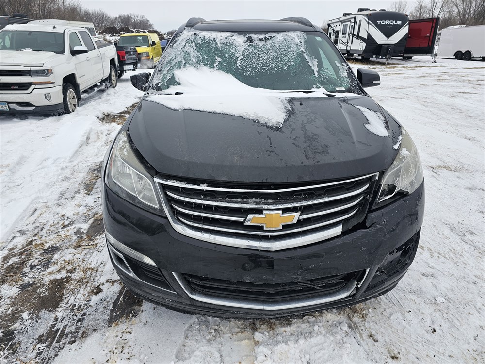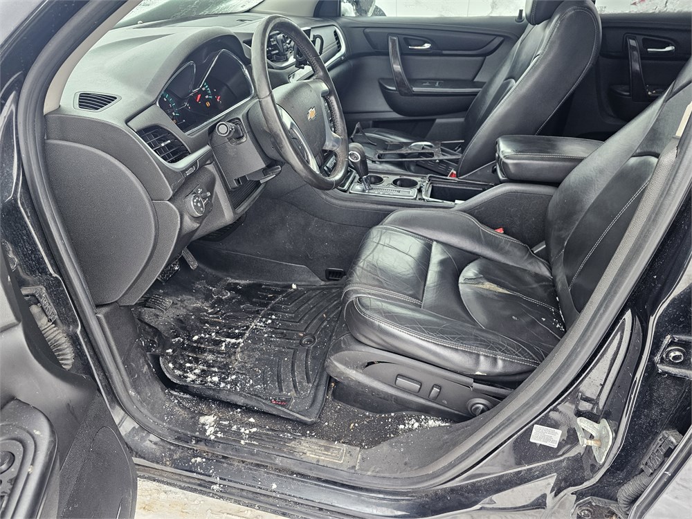 2015 Chevrolet Traverse 2LT AWD up for bid. Clean title now but it will be Salvaged/Rebuilt because of damage. Vin #1GNKVHKD2FJ224549. Miles are Approximately 212,304, The odometer does not illuminate. This vehicle does not run, it has a bad timing chain. Engine is a 3.6-liter V6 engine paired to a six-speed automatic transmission with all-wheel drive. This vehicle is equipped with a dual pane sunroof, rearview camera, rear parking sensors, power liftgate, power heated front seats, Bluetooth phone connectivity, OnStar telematics system, MyLink infotainment interface with a 6.5-inch touchscreen display, 10-speaker Bose AM/FM/CD/MP3 stereo, satellite radio, auxiliary audio jack, USB ports, leather upholstery, tri-zone automatic climate control, automatic headlights, keyless entry, 60/40-split-folding second- and third-row bench seats, tilt-and-telescoping steering wheel with multi-function controls, cruise control, heated power mirrors, remote start, auto-dimming rearview mirrors, universal garage door opener, power windows and locks, rear window defrost with wiper, trailer hitch, four-wheel antilock disc brakes, traction and stability control, a rearview camera, front-seat side airbags and full-length side curtain airbags.